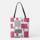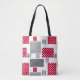 Grått-röd polka-pricklappverk på vit bakgrund tygkasse