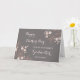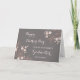 Lycklig Mors dag-kort för gudmor i grått, rosa och vitt blommönster med hjärtfilt verst.