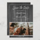 Skapa ett unikt meddelande med det här Grått Rustic Photo Save Date-alternativet. Ett meddelande har en bakgrund av rustiskt trä och ställe för att lägga till ett eget foto med en elegant textdesign. Ytterligare färg tillgänglig med den här designen.
