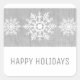 Vitaktig och söt Helgdag med röntgenflingor med tre snowflingor i vitt och en grått vintage struktur-bakgrund. Dessa enkla och klassiska klistermärken kan enkelt anpassas med en personlig jul hälsning. Hitta fler anpassningsalternativ genom att klicka på Anpassa. Fotografi © Storytree Studios, Stanford, CA
