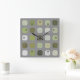 Grått Sage Oliv grönt Round Squares Art Mönster Fyrkantig Klocka