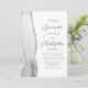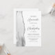 Den här elegantens lämnat kant har en modern bröllopsinbjudan med grått och vit vattenfärg som agerat i gräns med faux silver glitter. Anpassadet kombinerar grått-skriptet för kol och sans serif typsnitt på vit bakgrund. På baksidan finns utrymme för information om bröllop, tillsammans med en QR-kodgäst som kan söka på webbplatsen och OSAN, vilket sparar kostnaderna för utskrift och utskick av separat OSA kort.