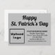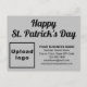 Grått St. Patrick helgdag vykort som du kan anpassa genom att ladda upp logotypen för ditt företag, skriva namn, adress, mobilt nummer, e-post och webbplats eller social-mediesida. Anpassa den och ge den till dina kunder eller kunder för att hälsa dem på St. Patrick's Day. Ett vykort för helgdag för att även marknadsföra ditt företag eller för att marknadsföra ditt varumärke namn. Ett vykort för anpassadets helgdag som du kan inkludera i marknadsföring-material för att bygga medvetenheten om varumärket namn. Kontrollera utseendet när du har laddat upp logotyp och skrivit in text. Om utseendet passar dig kan du ställe din beställning nu. Om du behöver ändra storlek på och flytta logotypen och texterna så att de passar på detta vykort för helgdag, justera i designen verktyg. Du kan också ändra bakgrunden färg, teckensnittet färg och teckensnittet stil i verktyg. Lycklig St. Patrick's Day! Jag önskar dig det bästa av tur, glädje och mer försäljning den här helgdag.