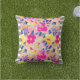 Grått Stripe Rosa Blommigt Dekorativ kudde