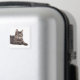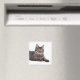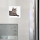 Porträtt i ett grått-stripe tabby katt sitta på vit bakgrund