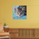 Den här poster är av en originell oljemålning genom att belöna den vinnande Colorado-konstnären Debra Mickelson. Det skildrar ett vackert grått och ett solstripat tabby katt ljugande på ett ljusblått däck. De levande blyorna upprepas under hela kattens jacka, tillsammans med bruna och varma gingerfärger. Grönt gult öga drar in dig!