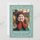 Charmerande teal-julkort med ditt familjefoto och ett skript ram med slingor, julbalkar och stjärnor som ett överlägg. Lägg till tre foton från årets högdagrar på baksidan, som också har passande skript i samma gråa grönt färg mot en vit bakgrund. Lägg sammanlagt fyra foton till det här God jul-kortet på dubblan i en mjuk nyans av muterad teal.
