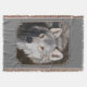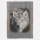 Ansikte av en grått-varg med klarorange öga. Realistiskt konstnärligt verk skapat från en ursprunglig oljemålning av häst- och vildlevande konstnären Crista S. Forest.