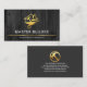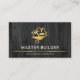 Ett trätäcke är inkapslat av tunn guld-linje nära kortets bas. Över överst är en guld-logotyp som du kan använda. Logotypen består av en hjulbarrow som laddar ett hem med en hammare och en rullpensel. Bara under logotypen finns namn med ett sloganalternativ för att publicera dina tjänster nära basen. På andra sidan, i ett grått-täcke för mörk, är en logotyp för hammaren i guld som du kan använda högst upp, följt av din prestigefyllda namn, kontaktinformation och en slogan för att publicera dina tjänster. Ett underbart täcke för karpentry-, byggnad- och byggnadsteman.
