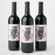 Grått Uggla Rosa Orchids Vinflaska Etikett