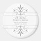Enkelt och elegant Finare Ornamental Spara datum magneter i grått och vitt med en sofistikerad konst deco stil prydnadsblommande gräns. Enkel att anpassa, lägg bara till din bröllop-information i den text fält tillhandahåller. Klicka på Anpassa om du vill söka efter fler anpassningsalternativ.