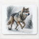 En stilig Grått-Varg, även känd som en Timber-Varg, patrullerar sin Winter-gräns i sökandet efter be.