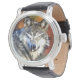 Grått Varg Oljemålning Design med levande vibrerande färg som grått, vitt, svart, gult, orange, rött och vissa gröntar. Med romerska siffror.
