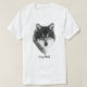 Grått varg Canis lupus animal porträtt i svartvitt. Elegant t-shirt för vem som helst. Anpassade. Du kan ändra eller ta bort Vargen Grått under bilden. Glöm inte att välja en annan stil, gender, storlek eller färg på skjortan. Du kan också överföra den här designen till en annan valfri produkt, bara använda ett alternativ till högerna av den här beskrivningen.
