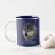 En stilig manlig Grått-Varg med ord "Skydda vårt ädla liv" nedan, gör en mycket coola mugg. 25 procent av alla intäkter från denna post kommer fantastisk Northern Ljus Wildlife Varg Centre i Golden, B.C., Kanada, inte långt från Banff. Tack för att du hjälpte mig att hjälpa dem.