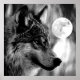 Grått Varg Porträtt & Full Moon - Blue Tones Ansikte of Grått Varg - College Pop Art - Vilda djur - World of Extreme Animals - Vargars Computer Bilder - Digital Tecknad Stil Animal Art