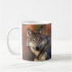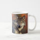 Fotografi av grått-varg som skurits till huvud och bröstkorg tryckt på båda sidor av mugg. Fotografi av Gary Kramer, USFWS.
