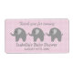 Klistermärken för vattenflaska av grått-elefant för babydusch. Anpassningsbar babyduschetiketter för vattenflaska med djurdesign i zoo och polka dots bakgrund. Personlig elegant DIY vattenburkdekmall. Snyggtens manustypografi för namn och födelsedatum för flicka eller pojke. Använda som klassad bord-dekoration eller tack för att ni kom till festen för gästerna. Genusneutral design med anpassadets bakgrund färg. dvs. pastellblått, rosa eller mjuk gult.