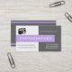 Grått-, vit-, lavender-öga-affärskort med en fotograferingskamera i svart på vitt, grått-bakgrund och ett lavender-lila-band med texten Fotograf. Ett kvinnligt affärskort av underbar professionell för fotograf- eller fotobranschen och tjänster.