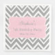Grått och vit chevron mönster med födelsedagsfest för pastellaccent vid rosa, pappra servetter. Grått och vit zigzag, och i mitten finns en quatrefoliform av pastellform i rosa med anpassningsbar.