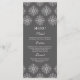 Den här snyggt chic bröllop-matmenyn har en elegant grått/mörk silver med en vit snöflingor-dammkonstruktion överst och grund. I mitten kan du enkelt anpassa det här med hjälp av menyn.