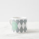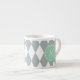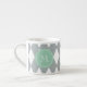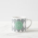 Grått vitHarlequinmönster, grön Monogram för Mint Espressomugg