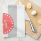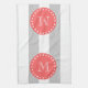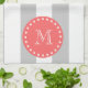 Grått vitrandmönster, korallMonogram Kökshandduk