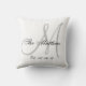 Personlig kudde i grått och vitt med familjens efternamn och bröllopsdatum i ett överlagrat typsnittsdesign på vit bakgrund. Elke Clarke© Finns tillgänglig på www.zazzle.com/monogramgallery. Gör en fin present till nygifta eller en familj. Elegant accessoar till sovrummet, favoritfåtöljen eller som rolig heminredning i familjerummet eller formell dekoration i vardagsrummet. Andra stilar och färger finns i vår butik.