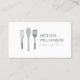 En trio vanliga köksredskap tillsammans med ditt namn eller företag namn gör perfekten logotyp på det här anpassadet affärskort för ett företag i cateringen, restaurang, personkock, matförfattare, livsmedel i lastbil eller något livsmedelsbaserat företag. © 1201AM-KREATIV