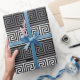 Grått White Black Nyckel Fret Mönster Design Presentpapper