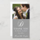 Skicka ett hjärtligt tack till gästerna i bröllop med dessa elegant, snyggt, enkla, Grått White Initial D Bröllop Tack Photo Cards. Utformning av Elke Clarke©. Anpassa med namn, tack och bröllop-foto. Vill du ha ett annat monogram eller ett annat färg-system, kontakta mig. Det finns ingen avgiftsanpassning tillgänglig.