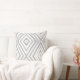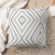 Dessa 20-tums x 20-tums dekorativ kudde har en modern diamantdesign i skuggor av grått på vit bakgrund.