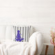 Grått & White Rand Child & Hund Blue Silhouette dekorativ kudde Grått och vit färg rand dekorativ kudde med en tjej som går med en hund som leker med en boll blå silhuett. Rustik Vintage, underbar för dekorering av baby eller barnrum
