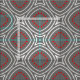Modern formgivning med en sömlös mönster av geometriska former i rött och vitt på en grått-bakgrund.