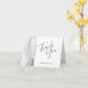 Den här eleganten är ett bröllop-tack som du har ett grått- och vitt vattenfärgat agat gräns som trimmas med faux silver glitter. Anpassadet kombinerar ord "Tack" i handskriftsskript för kol-grått och namnen för bruden och groomen i kursivt teckensnitt på vit bakgrund.