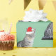 Grått White Stripe Cat med en julklapp. Snygg Kattunge är redo till jul, eller hur? Är du katter och kattungar från kärlek? Prisvärda presentidéer för vänner och familj. Ändra mitt skript till din egen personalisering.