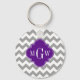 Grått Wht Chevron Lila Quatrefoil 3 Monogram Nyckelring