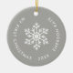 Keramisk helgdag är en ornament personlig med din baby-bild och anpassningsbar "Min första jul". Den här enkla moderna helgdag har en vit snöflake på grått-bakgrunden. Använda designen verktyg om du vill välja färg som bakgrund, redigera typsnitt och färger och lägga till egna foton för att skapa dina egna unika familjerepakelnamn.