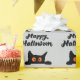 "Grått Wrapping Papper med Svarta katter for Halloween" sammanför elegant svarta katter och ord "Happy halloween" i ett sömlöst mönster, skapar det idealiskt för att slå ihop treter och överraskningar.