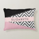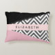 Grått Zigzag, Grått Chevron, Rosa, ditt namn Prydnadskudde