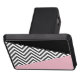 Elegant, snyggt och sofistikerad zigzag (chevron) mönster i grått och vit färg med rosa och svart plåster av färg. Modern gåva och trendig, perfekt för Zigzag älskare i livet.