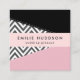 Elegant, snyggt och sofistikerade affärskort med zigzag (chevron) mönster i grått och vit färg med rosa och svart plåster av färg. Modern utformning och trendig, perfekt för zigzag älskare.