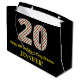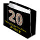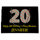 Denna enkla och roliga jul- och födelsedagstematiserade födelsedagspresentväska för 25 december har en stor siffra "20" med ett rött/vitt/grönt-randigt mönster, tillsammans med meddelandet "Glad 20-årsdag & God Jul", och ett anpassat namn. Bakgrunden är svart. En sådan här presentväska kan användas när man slår in presenter som ges till någon som är född på juldagen (25 december) och som firar sin tjugonde födelsedag.