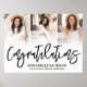 Denna horisontella examensskylt har tre bilder högst upp som tonar ut i en vit gradient mot botten för en ren och modern look. ”Grattis” visas framträdande i stor handskriven stil, med examenens namn, ”Klass 2026” och skola visas nedan i klassiska svarta teckensnitt för en polerad och läslig design.