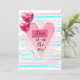 Glad Alla hjärtans dag Vacker elegant gratulationskort med modern papperskonst design, "Kärlek är i luften!"-bokstäver - rosa ram med dekorativa hjärtan, utskuret pappersmönster. Vacker romantisk handritad kort, akrylfärg bakgrund, med hjärtan, röda ballonger, speciell önskan malltext: “Hoppas din dag är fylld med påminnelser om hur mycket du älskas.” Kalligrafi, bokstäver. Anpassa dem genom att lägga till din önskan text och Namn en egen för din Trendig Elegant Design.