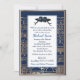Grattis Bar Mitzvah 20XX Välkomstkort, Inbjudan med mall. Tefillin. Guld Jerusalem Gamla stads ram, på marinblå bakgrund. Stilig Vintage-design. Religiösa händelser Bar Mitzvahs. Inbjudningar & presentkort > Inbjudningar & Annonser / Anpassa mall för personlig information.