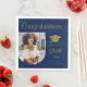 Fira din examenstudent med stil med dessa Moderna blå och gyllene Grattis Examensfoto Examensbåge Servetter. Med en snygg bågdesign, personlig examenfoto och modern typografi ger dessa anpassade servetter en chic och polerad touch till din examensfest. Perfekta för high school- eller collegexamensfirande, de passar vackert ihop med matchande välkomstskyltar, inbjudningar, koppar och tallrikar för en sammanhängande och snygg evenemangsuppsättning som är värd att dela på sociala medier.