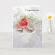 A rosa ros med gyllene bröllop ringar på en vit satinkudde för nylökar