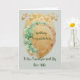 Grattiskort för ditt barnbarn och hans nya hustru. Designen har en guldfärgad och ljusgrön bakgrund med en eukalyptuskrans och guldfärgade hjärtan.