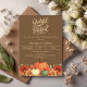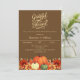 En mörk brun bakgrund. Dekorerad med pumpor och orange och gula blommor. Anpassa och lägg till information om party. Textskript: Lyckligt och välsignat.